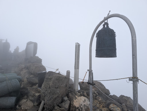 私が登拝した日はガスだらけで何も見えなかったが、一瞬の晴れ間から見えた雲は天上に来たかのようでした。また荒涼とした高山の火山帯をあるくので、途中はまるであの世にきたような寂寞感であった。これはすごいですね。ここまで来た甲斐があった。。。
