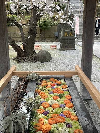 Read more日の峯神社に何度も足を運ぶ理由は花手水がとても素敵なのです。 毎月1日と15日にお花の入れ替えを行ってくれて季節の花を感じることが出来るとても心が洗われる場所です。 手水舎に近づくとセンサーで水がチョロチョロと流れだし快く迎えられてる感じがします。 機械でのおもてなしもなかなかいいものです。 近場ではないので毎回訪問は出来ませんがInstagramでも花手水のお知らせをしてくれているので、訪問できない時はこちらをチェックさせて頂いています。 車で訪問の際は、上の駐車場に停め、参拝して帰ると見逃してしまいます。 階段を下りた右側に花手水があるので是非花手水まで込みで参拝されては如何かと思います。 私はいつも下の駐車場を利用させて頂いています。何気に鳥居マークが可愛いです^^。 参拝の際、ハロを見ることが出来ました気象現象だと雨が降るときに起こる現象ですが、その日は雨も降らなかったのでスピリチュアル的に良い事が起きる前兆と言う事を信じようと思います。 こういった神聖な場所で特別な現象が見られて、峯神社が更に特別な場所になりました。 【日の峯神社】 祭神 ・大日霊貴命-おおひるめのむちのみこと-(天照大神の別名) ・彦火々出見命-ひこほほでみのみこと- ・火酢芹命-ほすせりのみこと- 創祀 貞観二(西暦八六〇)年九月、神殿はもともと日の峯山上でしたが 参拝に不便なことから宝暦十(西暦一七六〇)年、この地を下宮とし、三柱の神を下宮に勧請した神社です。 海上交通安全の神をはじめ交通安全、商売繁盛、家内安全、人士儀礼の神として信仰されています。 上臈岩 日峯配水池築造のため、昭和五十五(西暦一九八〇)年二月二十三日、今の境内地に移されています。 その際に日の峯山遺跡調査が行われ、三輪山(奈良県)・箱根山(神奈川県)・宝満山(福岡県)等と同様の、山頂に立地する古代祭祀遺跡と確認されているそうで、全国的に見ても珍しく貴重なもののようです。