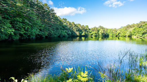 他の沼と比較すると水面の色はさほど特別には見えませんが、対岸の木々が水面に映りこんでいます。特に風が凪いだ時は美しいです。