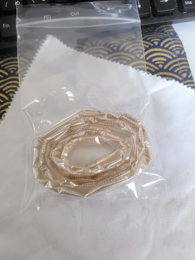たまたま ネットで検索をして見つけた こちらのお店に、30年前以上の古い金のネックレスとブレスレットのお直しを頼みました。 まずメールで実物の写真をお送りし 大まかな お見積もりをいただきました。地元札幌の他店でもらったものよりお 安かったことと、ホームページの内容や他の口コミを読んでも とても良さそうな工房でしたので頼むことにしました。 年末に問い合わせたにもかかわらず 敏速にご対応いただき、年末年始の営業時間のご案内はもちろんいただいたので了解はし、お正月明けに直してもらえるなと思っていたところ、 時間が空いていたということで作業 をおすすめくださり、スピーディーに修理をいただきました!これには申し訳ないとともに大変ありがたく思います。また、丁寧に磨いてくださり、 ピッカピカの新品のようなものが届いてびっくり 感激で す。もちろん 切れていたチェーンの部分は 綺麗につながっていました。 1つ1つ 小袋に梱包されてそれを安全にしっかりと 箱に入れ、それをまた プチプチで包んでくださり、しっかりと 梱包されて安全に届きました。詳細まで ご丁寧にやっていただいていることに感激です。これを直してください ました熟練のプロの職人さんのご対応に本当に感謝しております。 また何か 修理したいものができたら是非お問い合わせしたいと思います。 写真があまりうまく撮れなかったのですが本当にピカピカで輝いています。これを頂いたのは 祖母からです。壊れてしまって 何十年も眠っていたものが蘇りました。 感激でございます。ジュエリー工房...