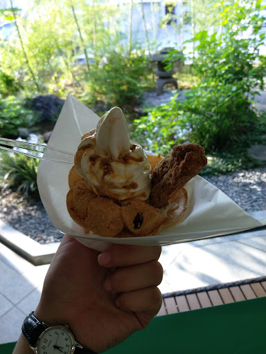 EDIT: went back when they had customers, about 5:20 on a Saturday. I was mistaken about their cafe space - there's a path off to the side, you have to walk past the small garden to get to it. Inside there's another register, bathroom, counter, and serveral tables. Even though the main store is open later the cafe closes around 5 so I thought I couldn't get anything. I went back into the store to ask if the cafe was closed and they told me it was but recommended another place I could go to get ice cream. I didn't want just ice cream, I wanted to try the shingen mochi soft cream creations they have! The employee actually went back to the cafe and said it was okay for me to get one! It was absolutely delicious!!