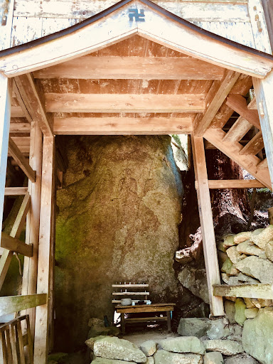 If you are driving by, stop and take a quick look. But, don’t go out of your way as the doors to the interior are locked. This is a Google Translation of the sign: The temple's name is Iwatani-san Senzenji. It is commonly referred to as Iwatani Kannon Temple due to its mountain name, Iwatani-san. Senzenji Temple was founded in 723 (Nara period) and is said to have flourished as a branch temple of Yamashiro Jubusan-ji, with five monks' quarters. It was burned down twice during the Ryakuo (Nanboku-cho) and Bunmei (Warring States) wars. A small chapel was subsequently built on the rock, and the principal image, a secret Eleven-Headed Kannon, is now enshrined there. Beneath the floor of the Kannon Hall, on a huge rock about 3 meters high on the right, is a relief carving of a rock-carved Buddha in the form of a triad. In the center, an 80cm-tall statue of Yakushi Nyorai is raised, and beneath the left side statue, the words "Kencho-buri year, product, November 8th, great donor..." are engraved. It is said to be the second oldest Kamakura-period sculpture in Japan, and was designated a town-designated cultural property (engraving) on...