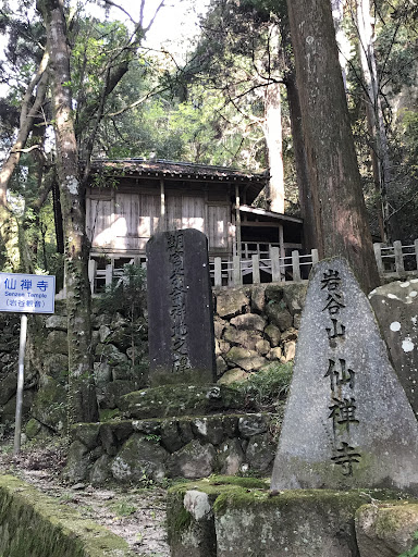 岩谷山仙禅寺は、山城国鷲峰山金胎寺の別院で、養老7(723)年行基によって開基と知られています。 古くには僧坊五宇を有して栄えましたが、歴応、文明の戦乱により焼失し、現在は岩上に小堂(昭和三十年)を構えて本尊十一面観世音菩薩をまつる。 堂宇の下の巨岩には、三尊形式の仏像が浮き彫りされている。 左脇持の下に「建長元年(一ニ四九)乙酉十一月八日大施主…」と線刻されており、鎌倉時代の磨崖仏としては二番目に古いとされる。