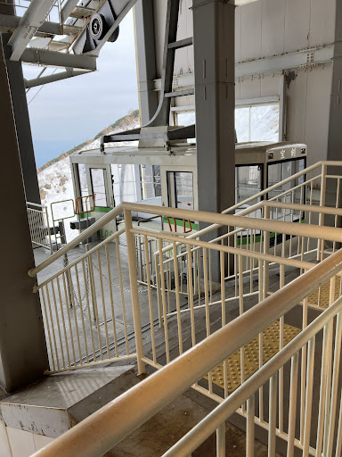 ガーン!ロープウェイの駅の周りは固まった雪しかも積雪1.5m。本格的冬山装備の人以外は歩くこともできない! ツレが、「ずっと駒ヶ岳へ行きたかった!」、お花畑が素敵やけど、その頃は混むので、ちょっと時期をずらして行ったつもりが、何もできない❗️