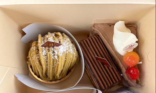 モンブラン→良い口コミが多く期待していたのですが、期待以上でした!😍 マロンクリームはしっかり栗の味が感じられ、中にはカットされた栗や、カスタードクリームが入っていました。底の部分はよく焼かれたスポンジ?柔らかいフィナンシェ?のようなものでした。 ボリュームがありますがお値段はお手頃でとっても気に入りました。