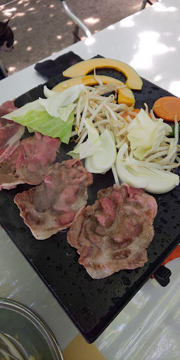毎年、訪れています。 ワイン豚の蒸し焼き風溶岩焼に手作りタレ、野菜もたっぷり。 この日は途中、局所的大雨に雷付きの日でしたが、全く問題なく食事をすることができました。