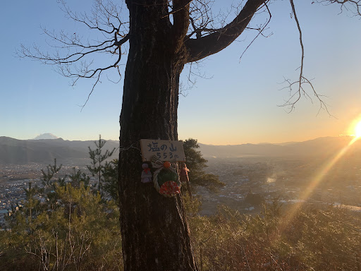 Read more甲府盆地北東部で、一際目を引く塩ノ山を登ってみた。 看板に拠れば、登り30分くらいらしいが、気合を入れたら20分で登れた。地元の人はトレーニングコースにしているのか、小走りで何往復もしている人を見かけた。 山頂には360度の見通しを案内する石板、健康なんとかなる木製の銅鑼のようなものもある。 樹木によって遮られる方向もあるけど、富士山側はすっきり見える。 南アルプス側は、登ってくる途中で良く見える場所がある。 麓から標高差150m程度登るだけの30分の里山トレッキング、駐車場が無いのが痛いけど、公共施設とかを探せばいいかもね。 それと、登山口が明示されてないのが困るけど、塩山温泉街の廣友館と左となりの黄色い...