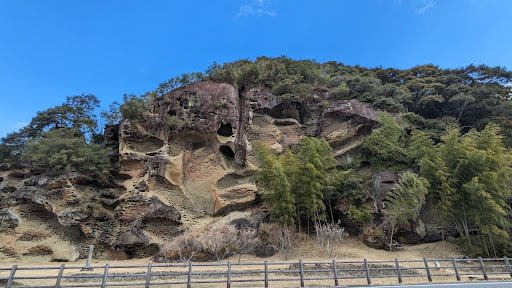 Read more南紀を巡るバイクツーリングの途中に立ち寄りました。 新宮方面から国道42号線を南下、田原口座線に入り、口座川町へ向かいます。街に入った直後に目に飛び込んできます。 第一印象は奇妙な岩肌。どうやったらこんなふうになるのだろう…。まさに奇岩、自然の力に驚きです。 集合体恐怖症(ブツブツが嫌い)の妻は、目を凝らして見ると気持ち悪くなると言ってます。(笑) 虫喰岩の向かいには、小さな道の駅があります。(こちらに無料の駐車スペースがあるので、車、バイク、自転車を停めて観光できます。) 到着が朝9時、開店前で中を見ることはできませんでしたが、ちょっとした休憩はできそうです。 観光で口座川を訪れた際にちょっと寄り道...