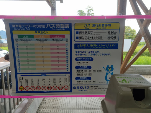 Read moreBus connection(s) are TERRIBLE: The arrival of ferry and departure of bus is not synchronized! You have to wait unnecessarily 50 minutes for the only bus line that can take you out of ferry terminal. Customer service didn't inform (offer) me that is possible to book a direct after-ferry shuttle that can take you immediately and quickly from ferry terminal to Kumamoto. It took me 50min of wait + 30min of bus unnecessarily, instead of just a quick 20min direct shuttle with not wait!). Bad customer service and bad customer...