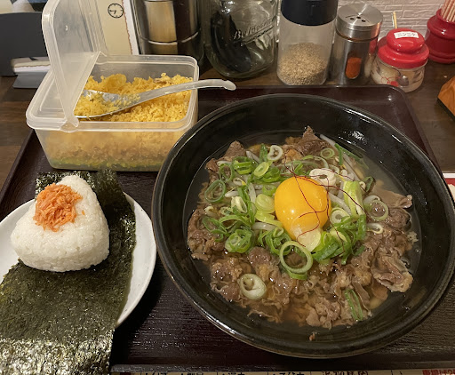 オーダー ・ざるうどん→537円 ・麺の大盛り→55円 ・梅おにぎり→19円 ・しゃけおにぎり→28円 ※全て税別価格です。