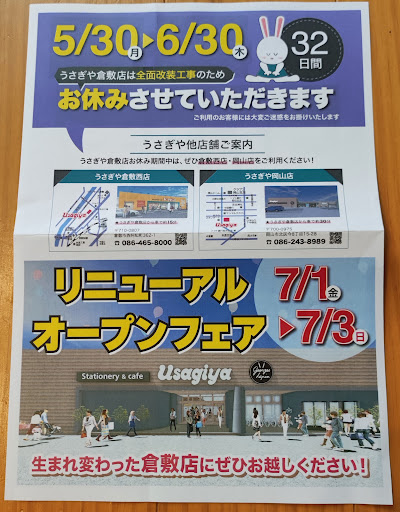 Read more岡山では有名な文房具専門店、うさぎやさん。 念願叶って初来店です。それも倉敷店。 こちらをチェーン展開しているクラブン株式会社の社長は“ジョージ”さんとしても知られ、名物社長のようです。 インタビューなど拝見すると、文房具、すなわち仕事に対する真摯な想いが伝わってきます。小さくて、すぐになくなったりもするけれど、そんなものたちを大切に扱って、探求して、愛でたい。