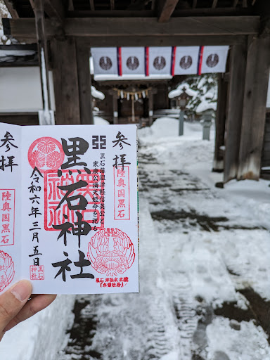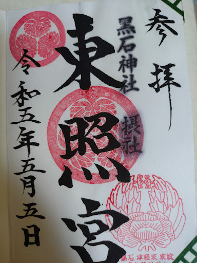 20200404ニュースで新型コロナウイルス感染防止のため4/10(金)夕方からGW明けまで弘前公園立入禁止になると流れていたので、急遽第1回弘前市弾丸ツアーに行って来ました! 岩木山周りの神社で参拝を済ませ、カーナビでecoモードで帰り道を設定した道中に鎮座する「黒石神社」へ向かいます! 小さいですが威厳を感じる神社さんです! 黒石神社:青森県黒石市大字市ノ町鎮座。 江戸時代の寛文2年(1662年)に黒石津軽家の祖とされる「津軽信英(のぶふさ)」が弘前城で死去すると、黒石陣屋東南の隅に廟を建立して埋葬したのが始まりと伝えられています。 陣屋とは、大名領(藩)の藩庁が置かれた屋敷のことです。 黒石陣屋は、今の黒石市民文化会館から御幸公園へかけての一帯にあったそうです! 明治時代に入り黒石陣屋が廃城になると、旧家臣達は藩祖の遺徳を偲び明治12年に神祭願いを県令に提出、社殿建立に至ったとの事です! 黒石神社には、青森県重宝に指定されている「金梨子地牡丹紋散蒔絵衛府太刀拵御神刀」と呼ばれる御神刀等の社宝あるそうです! 津軽家のご子孫が、津軽藩のお宝を大事にお守りしているとの事です! 参拝を済ませて、社務所で摂社の東照宮と併せて2種類の御朱印を頂きました!