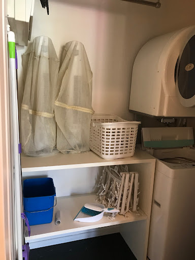 Laundry room is equipped with wahing machine and tumbler dry. Detergen provided. And some clothes hanger, vacuum, mop.