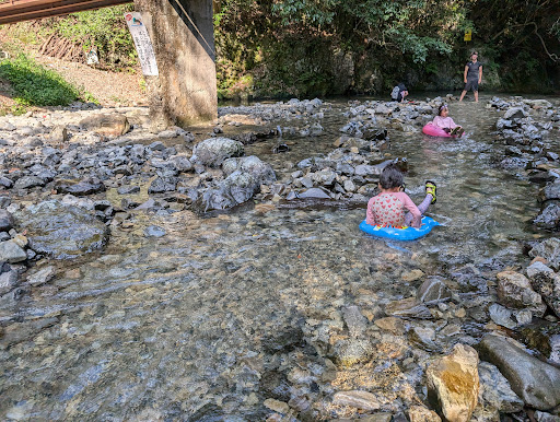 2024年のお盆に利用しました。100~200人ほど入れる天然プールです。 猛暑日でも日陰の水はかなり冷たくて気持ちいいです。 深さの違う川が段々になっていて、一番広いプールが成人男性のひざぐらいまで深さがあります。 朝9時の時点でプールまで100mほどの最奥駐車場(15台前後駐車可、1日1,000円)はまだ空きがありました!近くに車を停めたいなら10時までには行ったほうがいいと思います。 平屋の無料休憩所と有料の休憩スペースが多数あります。 シーズン中は海の家的なフード・プールグッズ販売もあります。 小さい有料ロッカー有り、トイレ有り 浮き輪用エアーの貸し出しは故障中のため小さい手動ポンプ1つだけでした。 更衣室はありません。トイレで着替えるか、遠い方の駐車場に着替え用の簡易テントが2つ有ります。 大小様々な石がプール底面にあるので足場が悪く素足だと痛いし滑りやすいのでサンダルかビーチシュー...
