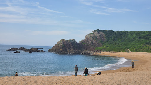 Tateiwa as a part of Geo Park : There is a legend of an ancient Emperial prince of Japan regarding this Tachiiwa. According to the story three evil demons called Oni were exterminated by prince Maroko ( Shotoku Taishi in his childhood ) sealed into this rock with his mother ( Hashiudo ). ( Shotoku Taishi ) is the very first Emperor of Japan and the one introduced Buddhist way of life to Japan. Two demons were killed and one was sealed into this rock to show the example for their evel doings. The rock stands as tall as 20 meters formed with basalt. To this day you can hear the sound of demon crying around the rock on windy nights. There is a monumental statues of Empress and the prince next to the beach side of this park offering protection of the sea. The location of this place is west of Byobu Rocks. You can also observe some ancient remains of burial mounds around the coast of this area called Geo Park. There is a road station of Tenki-tenki Tango as well as historical museum of this area nearby. You might want to stop by for some souvenir shopping and some learning experience. ( Trans-word+ : TGM...