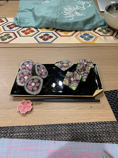 We then turned to Kazari Maki Sushi. All the ingredients were well prepared and Aya taught us step by step how to prepare the sakura sushi so that it looked and tasted as though a professional had made it, not we inexperienced students.
