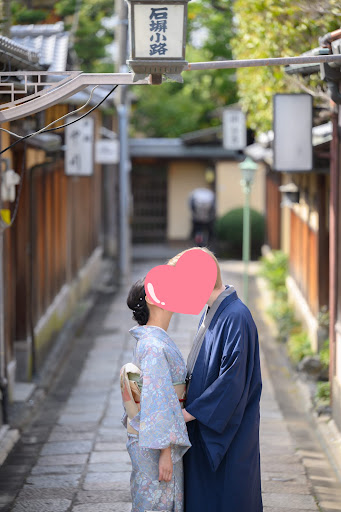 Our photographer Ko is amazing too! He knows all the nice spots that are not so crowded and around the shop, so that we can easily capture nice pictures while not walking so much (not the easiest with kimono shoes as you may know😜). The photos are beautiful with the traditional houses and streets of Kyoto and have nature light and style. Highly recommend to book a session for the great kimono...