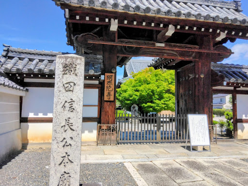 Read more織田信長とのゆかりが深い阿弥陀寺は蓮台山と号した浄土宗の寺で,本尊は阿弥陀如来,江戸時代には浄土48願寺巡拝の16番でした。天文年間(1532~55)清玉が近江国坂本に創建し,織田信長の帰依を得て上立売大宮に移り,天正10年(1582)に信長が本能寺の変に自刃した時,その父子らの骨灰を集めてこの寺に埋葬したと伝えています。その後,天正15年の寺の移転とともに織田信長以下120余名の墓も移設されました。 境内には俳人芭蕉や蝶夢の句碑があります。蝶夢は塔頭帰白院の住職でしたが,五升庵と号して芭蕉の遺蹟顕彰につとめました。また,儒者の皆川淇園(みながわきえん)一族の墓もあります。 (京都市) Amida-ji Temple, which has a deep connection with Oda Nobunaga, is a temple of the Jodo sect called Mt. Lotus. It was founded by Kiyotama in Sakamoto, Omi Province during the tenmon years (1532-55), and moved to Kamitachiuri Omiya after gaining the faith of Nobunaga Oda. It is said that the ashes of the ashes were collected and buried in this temple. After that, along with the relocation of the temple in the 15th year of Tensho, the tombs of more than 120 people, including Nobunaga Oda, were also relocated. In the precincts, there are stone monuments of haiku poets Basho and Chomu. Chomu was the chief priest of the sub-temple Kihaku-in, but he called himself Gosho-an and worked to honor Basho's legacy. There is also the grave of the Minagawa Kien family, a...