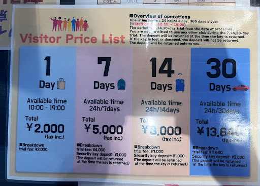 If you are a foreigner (I am), before you post a bad review please be fair and consider the following. Unless you want to look like a Karen or a John. I would understand if you feel upset after being turned away, but most gyms in Japan have the SAME rules, which are: No tattoos (I wear long sleeves to cover) Gym shoes, meaning not the shoes you walked to them gym with even if it’s proper sports shoes (however this gym does not require) No banging of weights, machine hogging, video/photo taking, and non standard gym exercises. So no skipping or yoga Pilates self stuff, do that in the park lol Being your passport or at least store a copy in your phone. That’s common sense when travelling isn’t it?