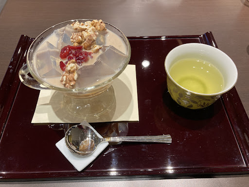 The store front is for pre packaged desserts and they have a small cafe to sit and eat at the back. Ambience is good, there is the view of a tree in the cafe. We were welcomed with cold tea. We got the Warabi mochi which was very tasty served with black sugar syrup and soy flour. We also got the Kuri zenzai which was quite weird but as tourists, we were exploring without knowing what to expect. Green tea was also really good that came with the set. Service was quick and fast. They have...