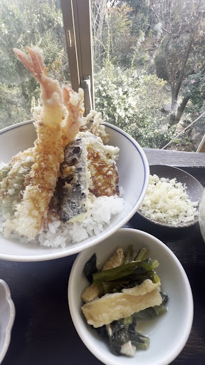 Read moreWe stayed at a place very close to this restaurant (less than a minute). We were greeted and seated right away. Cold green tea was served right away and menus provided. We ordered a salad with cold soba, hot soba with mini tempura bow, and the beef set. All came with small sides. I prefer the hot soba over the cold but the cold one had a nice texture as a salad. The beef bowl had so much flavor and the meat was delicious. The tempura was crispy and so good! The server was very attentive and kept checking on us, making sure we didn't need anything and refilling our tea. There's counter seating in the back facing a beautiful patio. The view is spectacular! Give this...