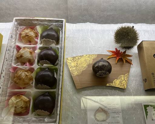 I like the tea experience. Itâs not cheap but I got: a welcome confectionery, water (there are also free refills of brown tea available), my hojicha came with a chocolate cookie, and the sweet (I chose baked cake with chestnuts). The interior is quite interesting as in âwhat a commercial/network place that does not shy away from tradition could look likeâ. I appreciate that and I wish places elsewhere were more into that...