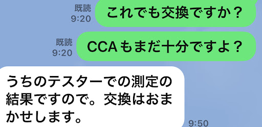 Read more2025/05に車検をお願いしました 見積もりを見てびっくり。 5.5万kの乗用車のアイドラプーリー破損、バッテリー交換、オイル交換、車検代で15万円の見積もり。 あまりにも高いバッテリーはキャンセルし、そのほかをお願いしました バッテリーのチェック表は日付がおかしく、 本当にこの車のものか?と問い合わせると 「ウチのテスターの結果です。日付はおかしいけど。」 と。 信用せず当方で交換しようと用意しました。 車検から帰って、ほぼ同じであろうと思われる条件でテストしたところ、 テスターの違いこそあれ、「バッテリー良好」 全く信用おけない販売店でした。 他にも色々ありましたが 懇意にしていた社員さんがいたので 我慢して転勤ごとに追いかけて 作業をいろんな車種でお願いしていました。 最後に来たLINEのメッセージで詫びもなく、 「ウチのテスターの結果ですので。」 今後もう日産車は処分...