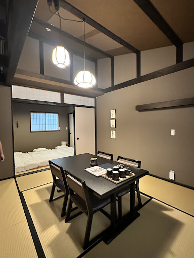 🍵 Sipping Tea on Tatami, Embracing Kyoto’s Slow Living The room layout is beautifully traditional, featuring a spacious tatami area with soft lighting that enhances the calm and cozy ambiance. One of my favorite moments was simply sitting by the tea table, enjoying a warm cup of tea, and letting Kyoto’s serenity sink in.