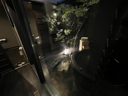 🌿 Serene Courtyard & Outdoor Onsen The ryokan itself feels like a hidden retreat, with a beautiful Japanese garden, stone pathways, and soft ambient lighting that add to its peaceful charm. The outdoor onsen was an absolute highlight—soaking in the warm water under the open sky was pure bliss. Occasionally, I could hear soft conversations from the neighboring bath, but since it’s an open-air setting, it felt natural and even added to the authentic onsen experience. Plus, everyone was very considerate, keeping their voices low to maintain the tranquil atmosphere.