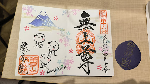We chanced upon this hidden gem on the way down from another temple. We saw the sign for the Goshuin and went in to have a look. The two ladies manning the store greeted us very welcoming-ly and showed us the available Goshuins for the day. It was about 1000 yen but it was worth every cent as it was hand drawn, very beautiful and it occupied two pages of my book. In addition to this, there was also a wide variety of hand drawn items that can be purchased which were all very affordable.