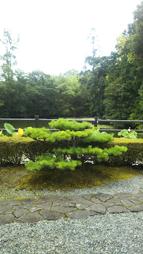 一番南の部屋には、走り大黒、中国の衝立には石がはめ込まれている。庭におかれた石は、動物に例えられる。 ここからの長めが素晴らしい。大原野。 その北隣が襖絵。住職と同級生の遺作。本堂、不動堂には、烏蒭沙摩明王(うすさまみょうおう)が安置される。そこから太鼓橋、下に庭が見える。塔は東山の高台寺からの移設。高台寺が駐車場を作るので不要になったことから、ここに移設した。