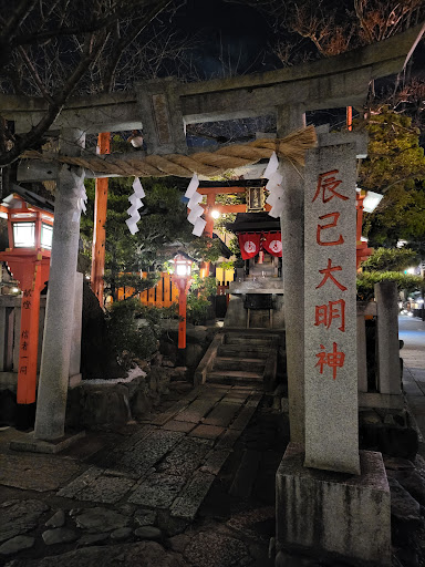 文化背景:辰己神社,又稱辰巳大明神,位於京都御苑的東南方,因此得名「辰己」。 傳說中,這裡原本是祇園白川一帶,一隻喜歡惡作劇的狸貓(たぬき)出沒的地方,當地居民為了制止牠的騷擾,便立了這座神社祭拜狸貓,希望牠能停止惡作劇。 另一個說法是,神社原本是為了守護京都御苑的東南方而建立,後來居民將其與祇園地區的信仰結合,特別是藝伎和舞妓前來祈求才藝精進。 以下是更詳細的解釋: 地理位置與名稱由來: 辰己神社位於京都御苑的辰巳(東南方)方位,因此得名。 狸貓的傳說: 傳說辰己神社所在地曾有狸貓作祟,居民為了制止其惡作劇,便建造神社祭拜,希望牠能停止騷擾。 藝伎與舞妓的信仰: 由於神社靠近祇園白川,也與當地藝伎和舞妓的信仰有所連結,她們會前來祈求在才藝上有所精進。 其他說法: 神社也可能最初是為了守護京都御苑的東南方而建立,後來才與狸貓和藝伎的傳說結合。 辰巳神社 位於京都御所的辰巳方向(東南方),該神社被稱為「辰巳大明神」,原本是守護東南方的神社。也因為坐落於祇園白川的岸邊,深受祇園地區居民的信仰,特別是希望在藝技方面有所精進的藝妓和舞妓常常前來祈禱。這座神社也被稱為「祇園的稻荷神」,其祭神是狸貓(たぬき)。據說,這源於曾經住在這一帶的狸貓常常惡作劇,讓人們困擾不已。後來,人們立了一座祭祀狸貓的小祠,從此狸貓的惡作劇就消失了。 白川通起源江戶時代,1670年鴨川建築堤防工程而誕生的新町,與弁財天町等等的合稱「祇園外六町」,1713年元吉町等等的「祇園內六町」,正式取得茶屋營業許可,江戶末期花街盛極及繁榮,茶屋高達500間,藝妓、舞妓、娼妓1000多人以上。