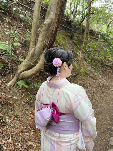Next it was hair. (An additional cost on top the ¥3300. I believe it is ¥1650). I suck at doing my own hair but if you have more talent than I do, feel free to skip this. You’ll likely want a cute ornament for your hair in advance if you go this route. I personally felt the authentic styling she masterfully executed really added to the outcome. They have a plethora of clearly photographed options hanging on the mirror for you to choose from. The “most popular” is the one I went with and I couldn’t have been happier. This woman is so fast I felt like I blinked and she had put together this absolute masterpiece! You get to choose a dangly hair flower even with the most basic option. I’m still reeling from her ability even a day later. She’s a true magician. I was out in no time flat enjoying the Arashiyama region.