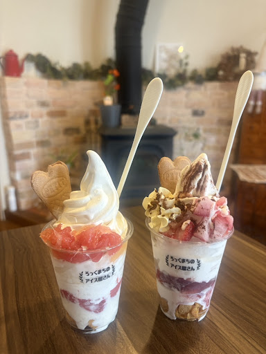 今回いただいたのは フローズンイチゴ&ティラミス的なものと ピンクグレープフルーツ&ピーチ&ヨーグルト でした。 フルーツの使い方がとても上手で 甘くて濃厚なソフトクリームと それぞれのフルーツが絶妙に口の中で絡み合います。 フルーツの酸味が際立つことはなく、むしろ調和しています。 またヨーグルトが甘めで、溶けたソフトクリームに合うんです。 最下部にヨーグルト、とのことで 食べる前は最初甘くて最後酸っぱいんだろなと思ってましたが 最後まで酸味が強まることはなく 本当に爽やかな甘さを楽しめました。