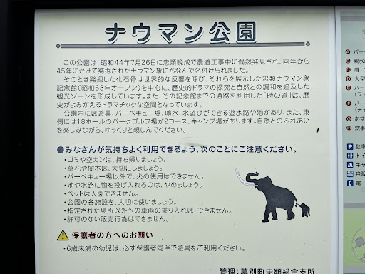 ナウマン公園 この公園は、昭和44年7月26日に忠類晩成で農道工事中に偶然発見され、同年から45年にかけて発掘されたナウマン象にちなんで名付けられました。 そのとき発掘した化石骨は世界的な反響を呼び、それらを展示した忠類ナウマン象記念館(昭和63年オープン)を中心に、歴史的ドラマの探究と自然との調和を追及した観光ゾーンを形成しています。