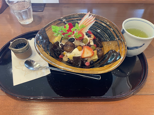 The zenzai is really delicious. I forgot the name, but I had it with chestnuts on top of black mochi. The surface had a fragrant smell and a crunchy texture, while the inside was soft and sweet, with a walnut-like granular texture that spread in your mouth, and the combination of the exquisite sweetness of the red beans and the texture of the chestnuts was really delicious. The interior of the shop is Western-style, but this zenzai is the ultimate Japanese sweet. I really liked this zenzai, which you can't find anywhere else. The inside of the shop is spacious and has a good view, and it's a comfortable place to spend time, but because it's so comfortable, there is a time limit of about an hour and a half. Well, all shops with a good view are like this. Also, it's unfortunate that it's difficult to find a parking space, but other than that, there are...