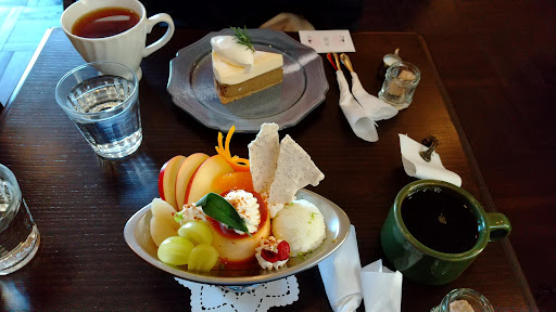 今回は秋のプリンアラモード、ほうじ茶チーズケーキ、ブレンドコーヒー、紅茶を頂きました。