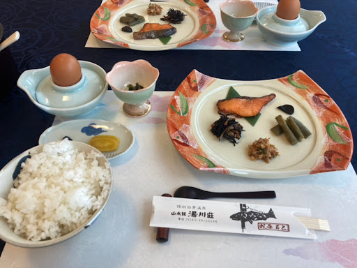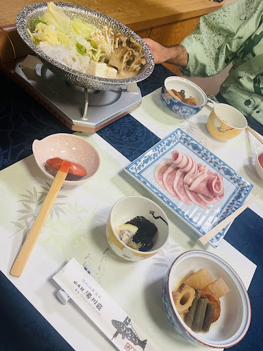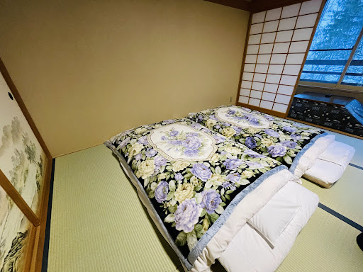 Secluded simple ryokan. It was a little challenging driving towards the location as the road was narrow and steep so be careful. The staff/family were really accommodating and nice. Amenities available are two big towels, two small towels, two socks, nightwear (you can ask for small size as the one set in the room is L size), two toothbrushes, hairbrush, hair tie, cotton, q-tips, and hair dryer. There is television, refrigerator and safe box in the room. Water heater for the tea set are also available. The downside is they have central heating which they turn off between 9-10pm so the only way to warm yourself up are the futons or the table that has a heater underneath which can only heat your lower extremities. Toilet in the room is available but no shower. There are five hot baths in total. 2 outside bath (one is small, the other is a little big), 3 inside (one is for women, one for women and third is private which can be used by anyone first come, first served). The private hot bath is small and deep so we were just standing in the bath. All baths have body soap and shampoo available. The shower in the woman’s bath is not functional so you would use the hot bath water to manually wash your body. They also have a recreational room which has a ping pong table and some board games. There is vending machine inside the facility. Books and magazines are available to borrow. The restaurant, onsens and recreational room are all in the 2nd floor. They have a souvenir shop in the first floor in the front desk area. Food was good and most were ingredients were...