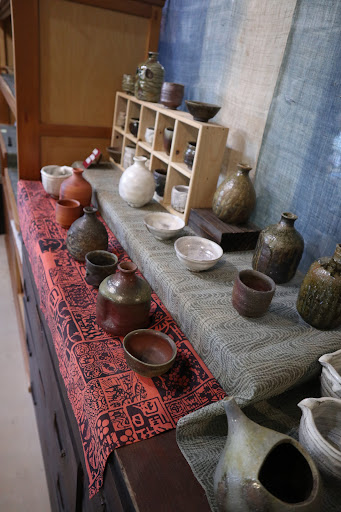 筆者はここで日人詩氏の焼き締めのぐい吞みを購入。焼き締めの本場である備前に負けない深みと重みを感じさせられる。 訪問した日(22年11月)はその日人夢氏が個展のため不在で、青瓷の作品はそれほど多く見られなかったのは残念。