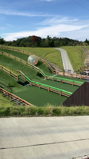 2023/6/24土曜日訪問 キャニオンドロップを体験しました。球体の中に入ってただ坂を転がるだけの単純なアトラクション。だがなかなか秀逸。今まで体験したことのない感じで思わず2回体験しました。 暑いこの時期は球体に水を入れるので全身びしゃびしゃ。ビシャビシャを楽しむというよりはビニールハウスと同じなので、暑さを和らげるために水を入れてると思われます。