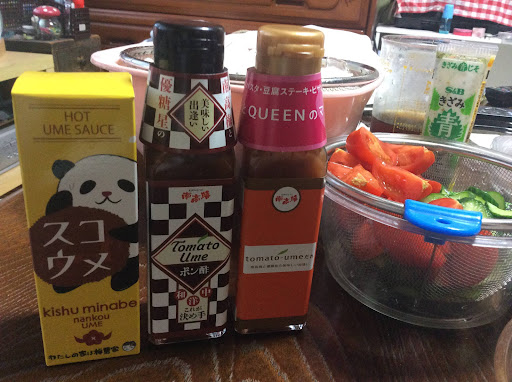 ミニトマトの赤糖房(あかとんぼ)に夢中です。梅干しの試食をして選ぶ事ができます。農協さんが作った調味料が美味しいです。tomatoumeポン酢とtomatoumeダレ...