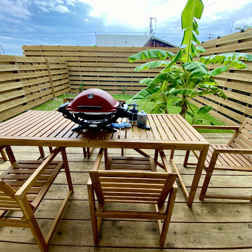 Read more清潔感溢れる室内と、部屋ごとに利用できるお庭が最高。 有料でバーベキューセットを借りる事ができ、リゾート気分を味わえる。 室内にはIHキッチンと食器類が完備されており、調理が可能。 屋外のグリルと合わせて利用すると、楽しい食事会になる事間違いなし。
