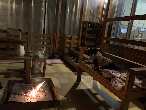 Read moreスーパーウッドデラックスに、家族4人(大人二人と生後5ヶ月と4歳の子供)で泊まりました。近くの温泉は、おむつ取れた子供じゃないと入浴出来ない為、下の子はコテージ内のシャワー室で、ビニールの空気を入れて膨らます、沐浴の時に使っていた物にお湯を溜めて入れましたが、シャワーのお湯が熱くなったり冷たくなったりで、苦戦しました💦また、浴室内はカビ臭かったです。 10月後半に行きましたが、虫除け対策は特にしていなくて、室内の窓際には、カメムシが沢山、室内に入っていて、大きな蜂も入っていて、各自で虫除け対策しないと、子連れや、虫嫌いな方は大変かと思います。 また、室内はエアコンと暖炉がありますが、子連れで暖炉は自分が不慣れなのもあって、少し怖かったので、エアコンのみ使用しましたが、加湿器が無いため、喉がカラカラになります。電気ポットがあるので、それでお湯を沸かして加湿代わりにしました。 他、テントサイドの方は、坂が急過ぎて、持ち運びや洗い物が大変です💦良いダイエットにはなりますが…。 外のトイレは洋式ですが、凄く狭いです。ズボンあげるのもキツイ程。 子連れでは少し、キツイ所でした💦 眺めは紅葉の時期...