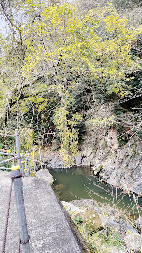 It's a nice place for BBQ. The minoo mountains paint a very nice picture in the background and the river is beautiful. But, the place has almost no trees (only some small, growing ones in the back) or any nice plants or even (good) grass? We were happy we could bring our dog, but there was almost no opportunity to attach his leash onto. Some big rusty stuff lying around too... Weird. They provide barbeques, that's nice. You have to bring the grill... toppers? The # to put the meat on....