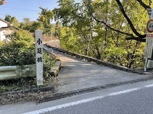江戸時代に作られた橋で今も生活用として利用されています。「鞘石垣」という技法で作られています。橋の下側に特徴があるのですが、生い茂る木々で見ることが出来ません。その代わりに紅葉との景色を楽しめます。