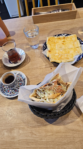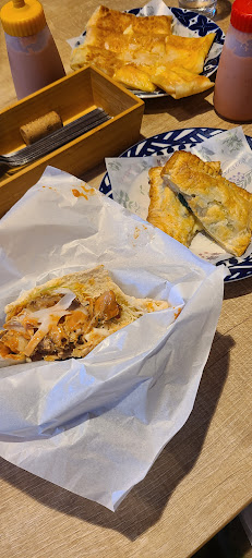 私はクラシックなマイルドケバブサンドイッチを注文し、チーズとほうれん草のミニパイを試し、その後テーブルでバクラヴァをシェアしました。