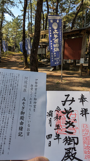 近くには、イザナギノミコトが禊を行ったみそぎ池もあり(ここで天照大御神、月読、スサノオノミコトが生まれた)、ニニギノミコト(天孫;天照大御神の孫)の関係の場所もあります