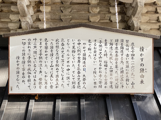 Read more立派な鐘楼で悲しい伝説があるのだけど、実際に銅を溶かしている釜に子供を抱いて一般の人が近付けるとも思えない。寺の寄進を断った戒め的な話としたら、嘘をついても鐘つくなという事かな? 梵鐘だけに盆正月だけは撞い...