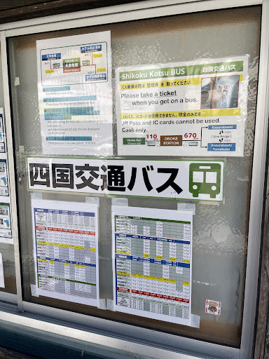Read moreSmall station. Note that the services are very limited. There are a small turist information office, toilets, lockers (see pictures) and and old-school ticket machine that only takes cash. We took the limited express train from Kotohira to Oboke, and switched to bus to Kazurabashi. Note that IC cards such as Suica does NOT work on these buses! (November 2025) Cash is king. Fortunately we found this out before boarding. Read the notes posted right by the bus stop to learn the...