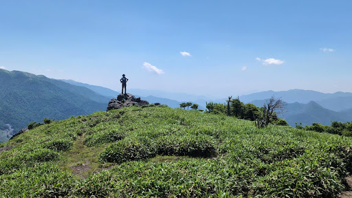 Read more剣山、三嶺、祖谷山系に囲まれた絶妙な位置にあり、絶景が楽しめる。 登山道も起伏が少なくて楽。20分あまり歩いて林を抜けるともう気持ちの良い笹原の稜線歩きを頂上まで満喫できます。 笹原の登山道から見る剣山は...